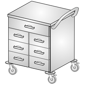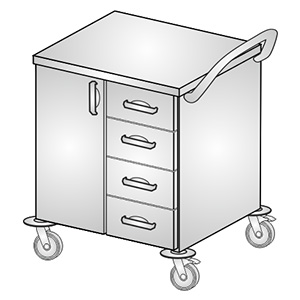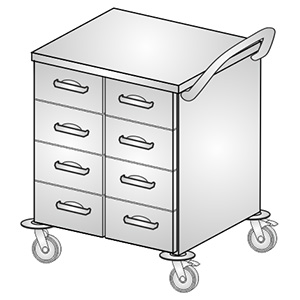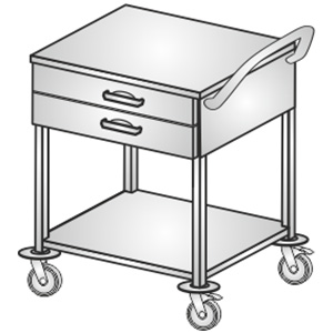 - wózek medyczny z blatem zagłębionym ze stali kwasoodpornej