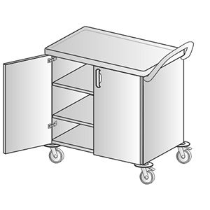 - wózek medyczny z blatem ze stali kwasoospornej, z trójstronną galeryjką.