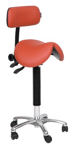 Fotelik męski Jumper z oparciem pod plecy. Chcielibyśmy zaproponowac Państwu ergonomiczne foteliki dla lekarzy. Kształt siedziska zapewnia utrzymanie miednicy w prawidłowej w pozycji , co z kolei wymusza prawidłowe ukształtowanie kręgosłupa podczas pracy. Na fotelikach siedzi się nie tylko wygodnie ale i - co najważniejsze - zdrowo! W standardzie : siedzisko pokryte skajem, podstawa z aluminium polerowanego, ręczna regulacja wysokości siedziska, kółka pokryte gumą. Opcje dodatkowe: wysokość siedziska regulowana nożnie; regulacja kąta nachylenia siedziska; oparcie z regulacją kąta nachylenia; kółka hamujące.