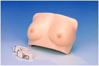 Model piersi pozwalający na realistyczna naukę samokontroli piersi , dzięki możliwości założenia go przez ćwiczącą. Zawiera 5 guzków i jednego wgłębienia.