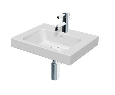 Umywalka MODO z otworem, z przelewem. Mocowana na śrubach. Do kompletowania z syfonem dekoracyjnym owalnym lub prostokątnym oraz zaworem spustowym.