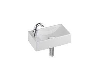 QUATTRO 40 cm, z otworem po prawej stronie lub po lewej stronie, bez przelewu (rozmiar: 40 x 23 x 11,5 cm). Mocowana na śrubach. Średnica otworu odpływowego – o 46 mm. Do kompletowania z syfonem dekoracyjnym, zaworem spustowym do umywalek bez przelewu lub odpływem z pokrywą chromowaną. Umywalki pakowane w kartonach.
