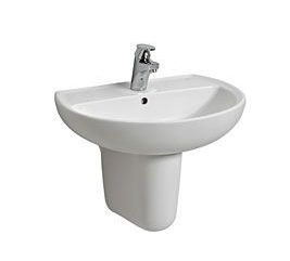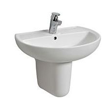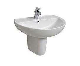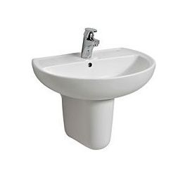 Umywalka REKORD (60 cm / 55 cm / 50 cm), z otworem lub bez otworu, z przelewem. Mocowana na śrubach. Do kompletowania z pólpostumentem. Możliwość kompletowania również z szafkami Domino XL.