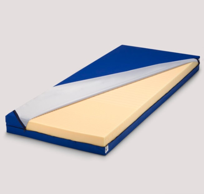 - Czterokierunkowy materac szpitalny wykonany z pianki poliuretanowej PUR o gęstości ok. 30 kg/m³.