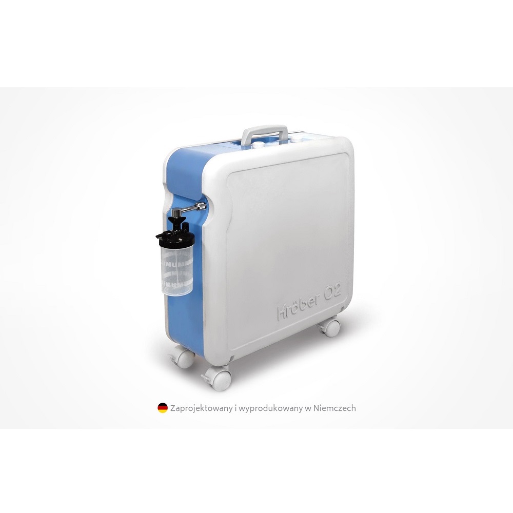 Koncentrator tlenu wyprodukowany w Niemczech. Niewielka , kompaktowa obudowa (w formie walizki. Rewelacyjnie cichy - tylko 35dB! Niewielka waga (19,8 kg). Niskie zużycie energii elektrycznej. Przepływ tlenu płynnie regulowany 0-6l/min (za pomocą w pełni elektronicznego przepływomierza). Komputerowy system samodiagnozujący (wyświetlacz LCD). Pełna diagnoza za pośrednictwem wbudowanego portu USB. Technik jest w stanie sprawdzić urządzenie w ciągu minuty!! Sprzęt firmy Kröber mającej ponad 25 letnie doświadczenie w produkcji rozwiązań do tlenoterapii z "najwyższej półki".