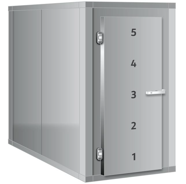 Komora chłodnicza w pionie do przechowywania pięciu ciał na pięciu poziomach. Stabilne, samonośne elementy ścian, podłogi i sufitu z płyt warstwowych. Wykonana ze stali nierdzewnej ANSI 304. (alternatywna opcja ze stali ocynkowanej, malowanej proszkowo). Szczelne drzwi z obwodową uszczelką profilowaną. Możliwość zamontowania indywidualnych drzwi dla każdego ciała. Tace na ciała (również na ciała bariatryczne). Moduły chłodzące typu monoblock lub split do pracy jako chłodnia lub mroźnia. Możliwość wyposażenia w automatyczny przełącznik redundantny zapewniający naprzemienną pracę jednostek chłodzących w trybie 24-godzinnym (przy wyborze dwóch agregatów) wydłużający żywotność i zabezpieczający na ewentualność awarii jednej z jednostek.