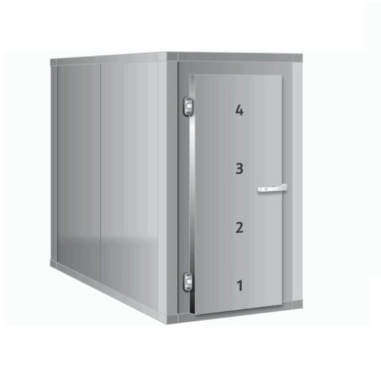 Komora chłodnicza w pionie do przechowywania 4 ciał na czterech poziomach. Stabilne, samonośne elementy ścian, podłogi i sufitu z płyt warstwowych. Wykonana ze stali nierdzewnej ANSI 304. (alternatywna opcja ze stali ocynkowanej, malowanej proszkowo). Szczelne drzwi z obwodową uszczelką profilowaną. Możliwość zamontowania indywidualnych drzwi dla każdego ciała. Tace na ciała (również na ciała bariatryczne). Moduły chłodzące typu monoblock lub split do pracy jako chłodnia lub mroźnia. Możliwość wyposażenia w automatyczny przełącznik redundantny zapewniający naprzemienną pracę jednostek chłodzących w trybie 24-godzinnym (przy wyborze dwóch agregatów) wydłużający żywotność i zabezpieczający na ewentualność awarii jednej z jednostek.