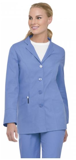 Wyszczuplający, idealnie dopasowany fason. Marynarka zapinana na 4 guziki, z naciętą klapą oraz szwami wiedeńskimi modelującymi sylwetkę. Dwie kieszenie, jedna z dodatkową kieszonką na akcesoria. Z tyłu między szwami wiedeńskimi taśma elastyczna, która dodaje lekkości. Szerokie mankiety.
