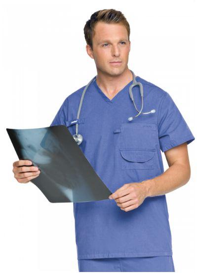 Wygodna męska bluza ochronna. Naszyta jest na niej kieszeń podzielona na dwie części wraz z pętelką na długopis/pióro. Jedna część odpinana na telefon komórkowy, druga z klapką. Po prawej stronie zapinana na rzep zakładka przytrzymująca stetoskop. Głęboko wszywane kieszenie. Na plecach szeroki kołnierz z siatką wentylacyjną.