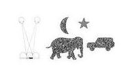 Cztery obiekty o różnej dysparacji: słoń / 600", samochód / 400", księżyc i gwiazdka 200"