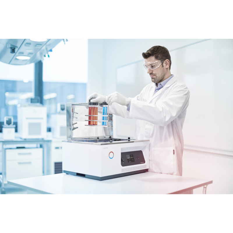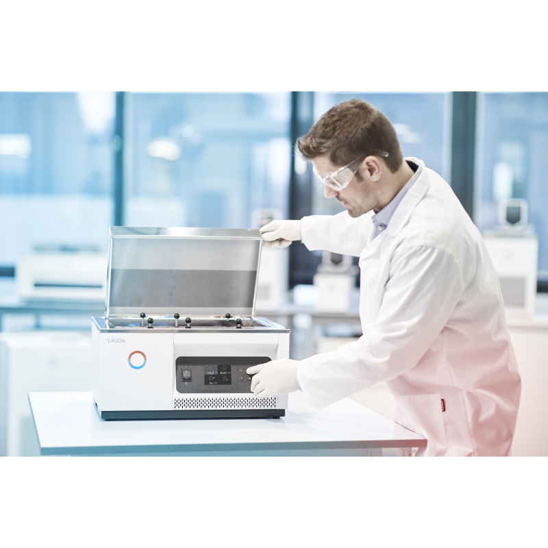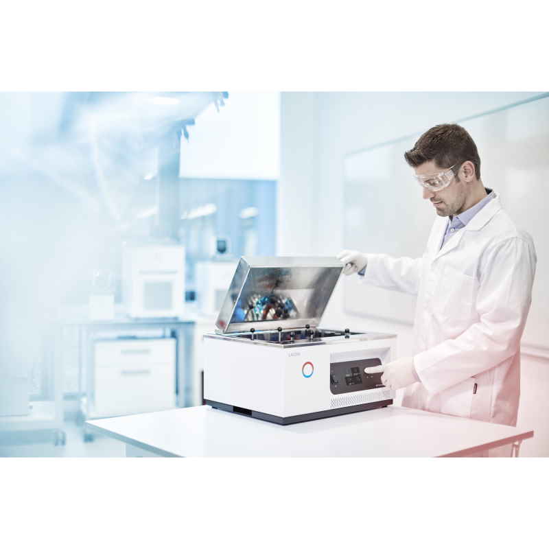 Łaźnie wodne serii Hydro z pokrywą firmy Lauda przeznaczone są do podgrzewania i odparowywania mieszanin i substancji w kąpieli wodnej. Zakres pracy od temperatury pokojowej do +100ºC pozwala na pracę w pełnym zakresie medium, którym jest woda. Dzięki zastosowaniu pokrywy, straty wody podczas parowania są zniwelowane. Wbudowany regulator poziomu wody w wannie zapobiega uszkodzeniu urządzenia np. w przypadku braku wody bądź podczas jej nadmiernego odparowania. Obudowa ze stali nierdzewnej zapewnia odporność przed agresywnymi substancjami.