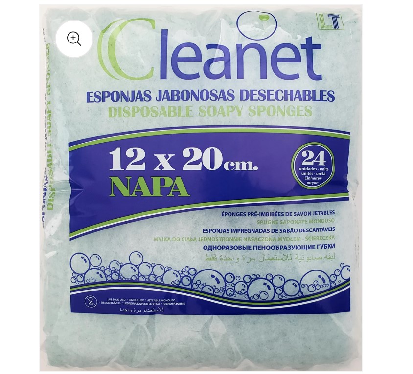 24 Jednorazowych myjek 12x20cm. 90gr.
