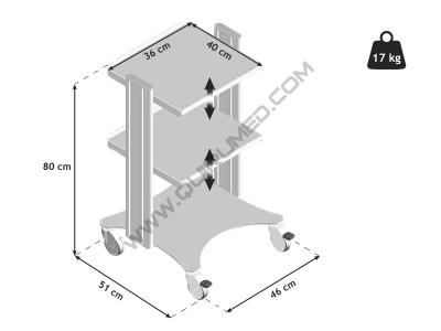 Asystor kosmetyczny z 3 półkami i aluminiową strukturą.