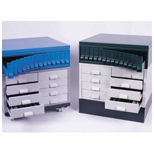 Sztywne, metalowe szafki przeznaczone do długoterminowego przechowywania bloczków parafinowych.