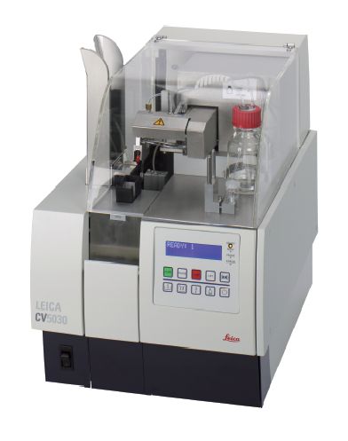 Zaklejarka preparatów mikroskopowych (nakrywarka) produkcji firmy Leica. Przeznaczona do hitologii i cytologii. Może pracować z różnymi substancjami zaklejającymi oraz ze szkiełkami nakrywkowymi o rozmiarach w zakresie 22-24 mm x 40-60 mm. Posiada funkcję wykrywania połamanych szkiełek oraz system samokontroli informujący użytkownika o konieczności uzupełniania szkiełek nakrywkowych. Aparat wyposażony jest w system kontroli emisji oparów z filtrem węglowym z możliwością opcjonalnego podączenia do zewnętrznej wentylacji. Wydajność aparatu wynosi ok. 400 szkiełek na godzinę.