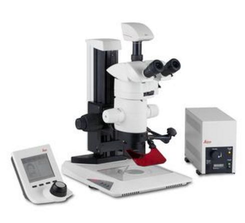 Mikroskop stereoskopowy Leica MZ10 F o budowie modułowej z systemem zoom umożliwiającym uzyskanie powiększeń w zakresie 8x…80x przy wysokiej rozdzielczości rzędu 375pl/mm. Mikroskop ten wykorzystuje technologie Triple Beam, która umożliwa (dzięki rozdzieleniu drogi optycznej mikroskopu od wiązki oświetlenia fluorescencyjnego w korpusie) uzyskiwanie obrazów fluorescencyjnych o dużej jasności przy zachowaniu czarnego tła.