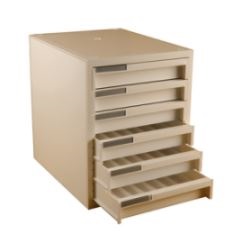 Sztywne, plastikowe szafki przeznaczone do przechowywania bloczków parafinowych.