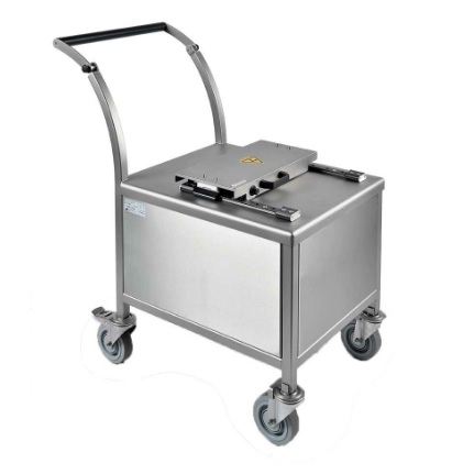 Osłonięta szafka wózka posiada osłonę przed promieniowaniem wykonaną z ołowiu o grubości 30 mm, dostosowaną do obowiązujących w służbach przepisów dotyczących transportu źródeł. Zapewnia to użytkownikom większy komfort pracy w połączeniu z zapewnieniem odpowiedniej ochrony przed promieniowaniem jonizującym stosowanych izotopów, niezależnie od wymaganego czasu transportu.