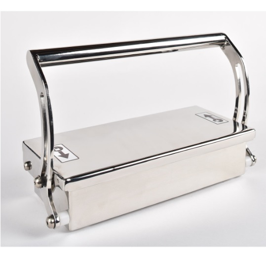 Cylindryczny uchwyt pokryty stalą nierdzewną 304L stalą nierdzewną ułatwia chwytanie i trzymanie podczas transportu. Jest wyposażony w w tackę zabezpieczającą przed rozlaniem, ograniczającą wszelkie możliwe rozprzestrzenianie się radioaktywnych. Dostarczane są dwa modele wykonane z białego tworzywa ABS i odpornego na kwasy i środki odkażające. Wytrzymała płyta zapobiegająca przewróceniu HDPE 500 zapewnia stabilność walizki po po otwarciu. Jest ona wykonana ze stali nierdzewnej z uszczelnionymi spawami zapewniającymi trwałość i łatwość, codzienne czyszczenie, nawet przez zanurzenie. Opcja blokady jest dostępna na życzenie w celu zwiększonego bezpieczeństwa.