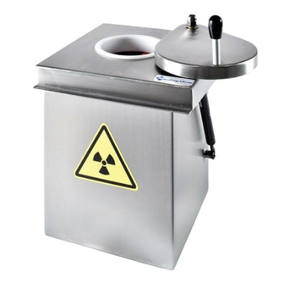 Osłonięty pojemnik na odpady Medisharp to miniaturowa szafka do przechowywania zużytych i zanieczyszczonych igieł po ręcznym wstrzyknięciu radiofarmaceutyków. Wersja Medisharp o niskiej i średniej energii jest dostępna w 2 modelach ekranowania i ma grubość ołowiu 3 mm, aby pasowała do radioizotopów takich jak 99mTc, 111In, 201Tl, 177Lu, podczas gdy wersja Medisharp High Energy posiada 16 mm ołowiu. Aby zapewnić niezbędną ochronę podczas przechowywania odpadów skażonych na przykład 18F i 68Ga. Wykonany jest z ołowiu z wykończeniem ze stali nierdzewnej, co ułatwia odkażanie bakteriologiczne i radioaktywne. Dostępne są dwa otwory, pełny lub częściowy, dla poprawy