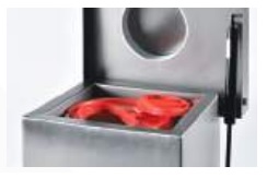 Uchwyt na pokrywie ułatwia otwieranie i zamykanie Medisharp w modelu Low i średniej lub wysokiej energii, jednocześnie ograniczając ryzyko zanieczyszczenia operatora. Ten typ ekranowanego pojemnika na odpady może być umieszczony na stole, ale także na „wózku do transportu wtryskowego” wózku medycznym.