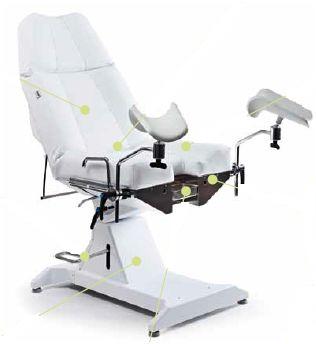 Fotel ginekologiczny HYDROGYNO włoskiej firmy LEMI. Fotel zbudowany jest z 4 segmentów sterowanych mechanicznie.
