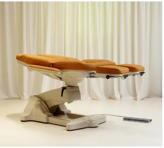 Urządzenie to zapewnia łatwy dostęp dzięki minimalnej wysokości wynoszącej jedynie 52 cm. W tym samym czasie fotel może być podniesiony do maksymalnej wysokości 150 cm, dzięki czemu użytkownik może pracować w idealnych warunkach zarówno stojąc, jak i siedząc. Trzy elektryczne siłowniki gwarantują pełną elastyczność oraz możliwość regulacji wysokości, pozycji Trendelenburga oraz oparcia za pomocą praktycznego pedału do kontroli. Podnóżki mogą być otwarte na boki i wydłużone, pozwalając użytkownikowi na zapewnienie idealnych warunków nawet w przypadku trudno dostępnych obszarów zabiegowych. Materac posiada komfortową i regulowaną podporę części szyjnej kręgosłupa.