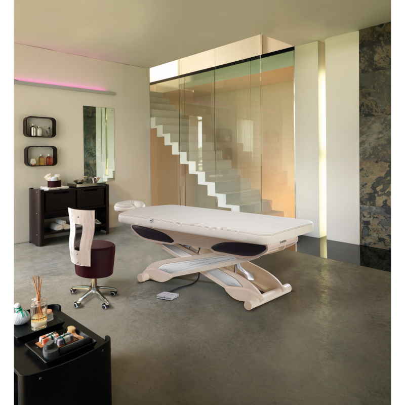 Stół SERENEYA 1S to wygodny stół do SPA, który idealnie sprawdzi się podczas zabiegów na twarz i ciało. Drewniana podstawa, wysoka jakość wykończenia oraz regulacja wysoko to doskonałe połączenie stylu i komfortu.