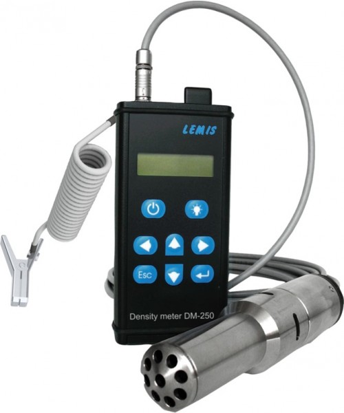 Przenośny miernik gęstości DM-250.1 został zaprojektowany do prowadzenia pomiarów gęstości klarownych cieczy znajdujących się bezpośrednio w zbiornikach, bez potrzeby pobierania próbek, na głębokości do 6m (na zamówienie do 8m). Urządzenie pozwala również na pomiar gęstości względnej produktów naftowych oraz objętościowego stężenia alkoholu w roztworach wodnych. Wykonana ze stali nierdzewnej sonda pracuje na zasadzie pomiaru częstotliwości rezonansowej oscylacji układu mechanicznego. Nie posiada typowych elementów wyporowych co zdecydowanie zwiększa jej niezawodność. Gęstościomierz może być stosowany do jakościowej i ilościowej kontroli produktów naftowych w trakcie procesów produkcji, rafinacji, transportu, magazynowania i sprzedaży.