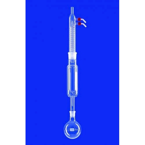 Kondensat przepływa przez ekstrahowaną próbkę i spływa z powrotem do kolby w sposób ciągły, bez przerywania procesu ekstrakcji, tzn. następuje ciągła recyrkulacja rozpuszczalnika. System składa się z: ekstraktora z płaszczem ze szkła DURAN®, chłodnicy Dimrotha z gwintem GL 14 ze szkła DURAN®, kolby okrągłodennej ze szkła DURAN.