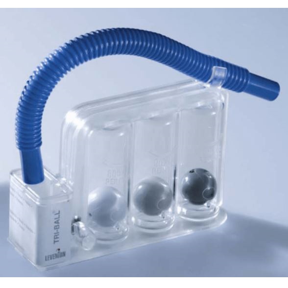 Tri-Ball jest urządzeniem do rekonwalescencji pacjenta po przebytej operacji brzusznej lub drenażu klatki piersiowej. Pozwala na powrót pacjenta do normalnego oddechu poprzez trening kontrolowanego wdechu w zakresie 0,6 l/s – 1,2 l/s od Slow (SSMI) poprzez Medium aż do High Intensity zapewniając odpowiednią dystrybucję powietrza i efektywną wentylację. Tri-Ball jest urządzeniem prostym w obsłudze, dodatkową jego zaletą jest wpływ psychologiczny na pacjenta.