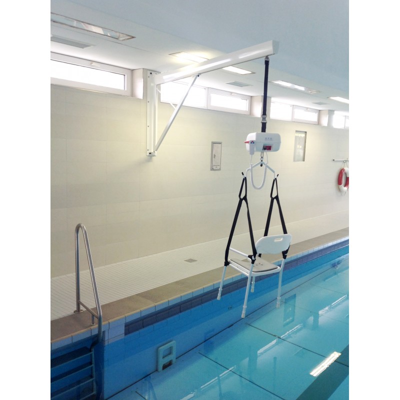 Montaż podnośników basenowych ułatwia osobom niepełnosprawnym zarówno dostęp jak i korzystanie z basenów. Wytrzymały wyciąg naścienny oraz niezawodny podnośnik LeviCare UNO gwarantują udźwig do 160 kg. Użytkowanie podnośnika basenowego sprowadza się do zapięcia osoby podnoszonej w specjalne siedzisko kąpielowe oraz podwieszenie go za pomocą wygodnych zaczepów na podnośnik. Za pomocą pilota można dowolnie regulować wysokość podniesienia, a osoba opuszczona do basenu może poruszać się swobodnie w zasięgu działania podnośnika. Obsługa podnośnika jest bardzo prosta. Jest on również wyposażony w wyłącznik awaryjny oraz systemy informujące o niskim stanie baterii.