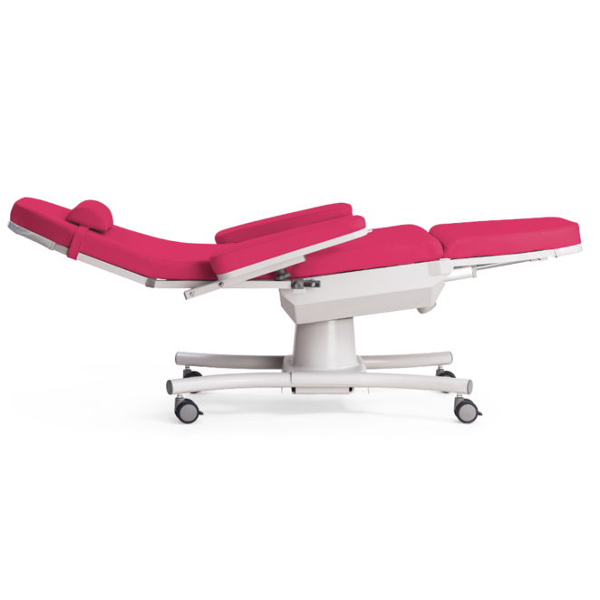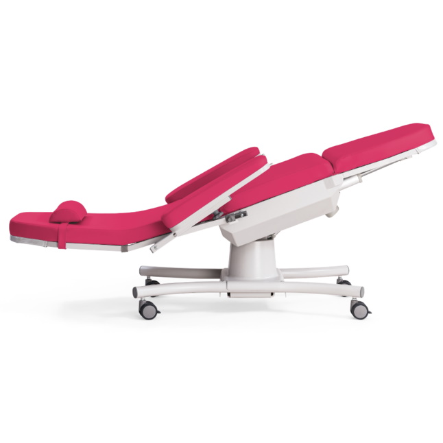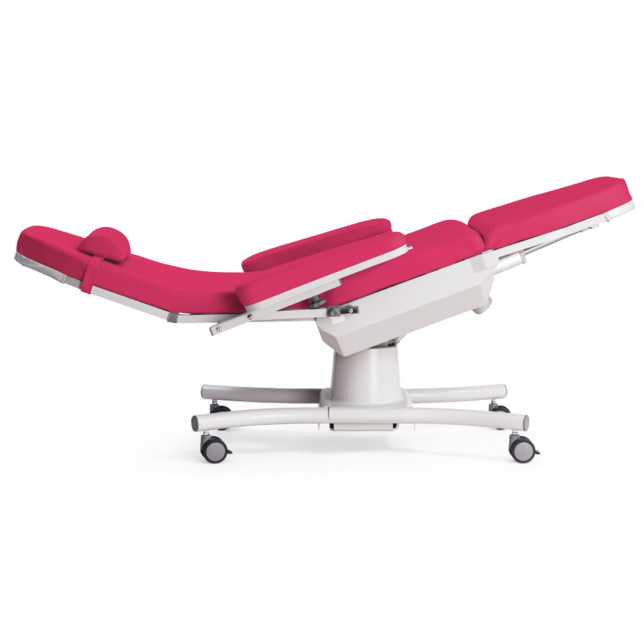 SENSA® Flex A4 CAto fotel zabiegowy o minimalnym zapotrzebowaniu na miejsce i maksymalnym komforcie dla twoich pacjentów. Cztery silniki elektryczne zapewniają regulację części oparcia, siedziska, nóg oraz wysokości. Przewodowy pilot sterujący, z funckją blokady magnetycznej, posiada oddzielne przyciski, za pomocą których uzyskujemy pozycję fotelową oraz pozycje szokową oraz Trendelenburga. SENSA Flex A4 CA został opracowany z myślą o specyficznych potrzebach w onkologicznych szpitalach dziennych oraz w medycynie infuzyjnej i transfuzyjnej, a także w wielu innych obszarach. Dla maksymalnego komfortu krzesło jest wyposażone w system centralnej blokady hamulców.