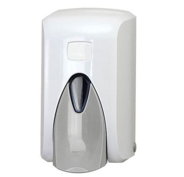 - łokciowy dozownik mydła w płynie, 0,5l, biały, ze zbiornikiem