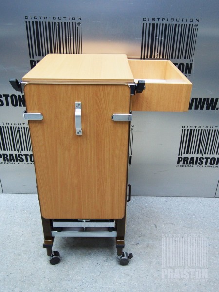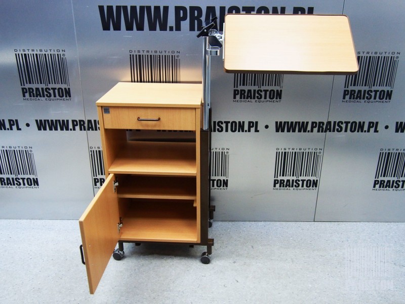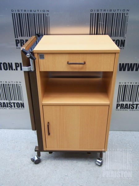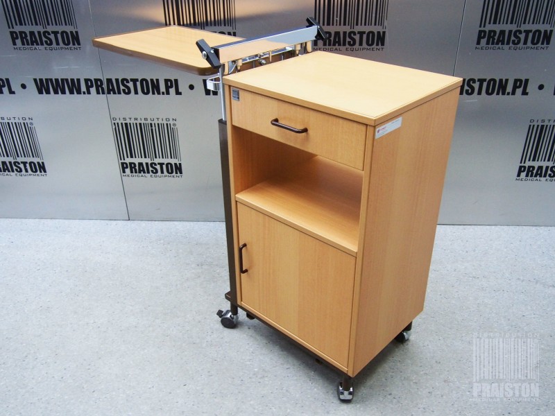 - Najważniejszym elementem prezentowanego modelu szafki do łóżka rehabilitacyjnego jest wysuwany, regulowany w poziomie blat roboczy. W szafce tej można nie tylko określić zadaną wysokość blatu szafki ale również jego kąt nachylenia. Jest to opcja bardzo chwalona przez podopiecznych i pacjentów placówek medycznych i rehabilitacyjnych,