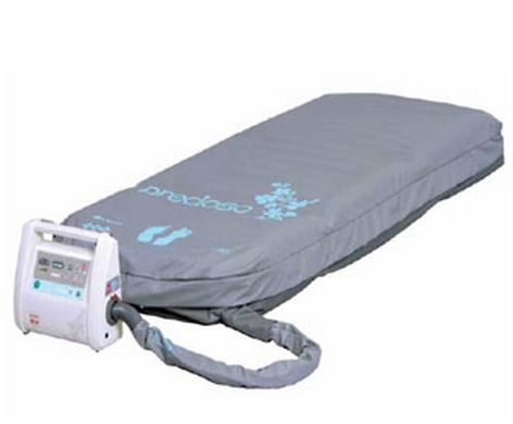 - Materac wyposażony w centralną pompę zasilającą zawieszaną na ramie łóżka z możliwością ustawienia na podłodze.