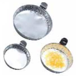 Z aluminiowej folii z usztywnijącą karbowaną kryzą. Oznakowanie identyfikacyjne próbki jest możliwe na uchwycie.