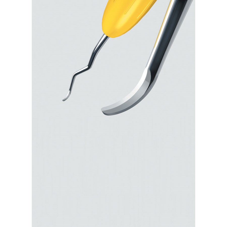 Specjalne narzędzie do skalingu nad i poddziąsłowego. Kombinacja kirety uniwersalnej i wykończeniowej z dwiema eliptycznymi powierzchniami tnącymi.