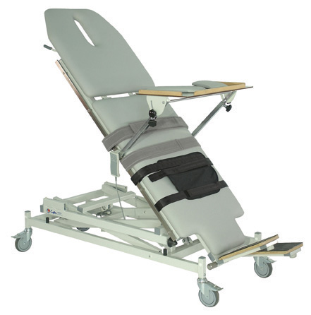 Oba rodzaje stołów pionizujących Standard i Multi-Tilt posiadają elektryczny regulator wysokości w zakresie 45-80cm, elektryczny regulator pionizacji od pozycji horyzontalnej do pozycji pod kątem 90°, z ręcznym wyłącznikiem bezpieczeństwa. Proste i niezawodne funkcje maksymalizujące poczucie bezpieczeństwa pacjenta.