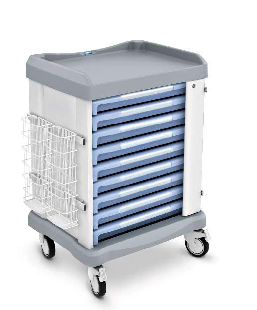 Wózek przeznaczony do przechowywania kateterów do endoskopii. Wyposażony w 9 szuflad. Masa 47 kg.