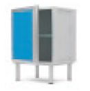 Szafka zamknięta z 1 półką wewnątrz. Ścianki wewnętrzne specjalnie przystosowane do pojemników (wkładów) do przechowywania ISO.