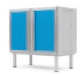 Szafka zamknięta z podwójnymi drzwiczkami i jedną półką wewnątrz.