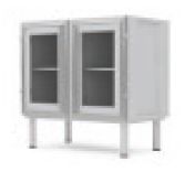 Szafka zamknięta z podwójnymi drzwiczkami szklanymi i jedną półką wewnątrz.