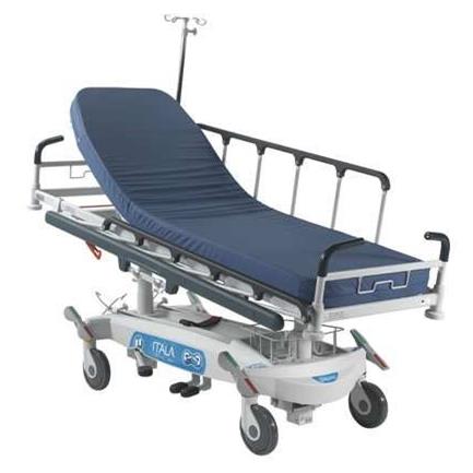 Nosze hydrauliczne z regulowaną wysokością, dwusegmentowym leżem, o konstrukcji wykonanej z pomalowanej stali, z ramą na 4 kołach skrętnych i systemem podnoszenia na dwóch cylindrycznych kolumnach sterowanych za pomocą pedałów. Rama podstawy obudowana jest tworzywem sztucznym łatwym do utrzymania w czystości. Regulacja wysokości leża i pozycji Trendelenburga/anty-Trendelenburga odbywa się przy pomocy trzech sterowników nożnych umieszczonych po obu stronach wózka.