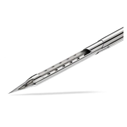 Ostro zakończona igła bez trudu zagłębia się w gęstej tkance piersi, ułatwiając dostęp do zmian chorobowych podczas każdego zabiegu.