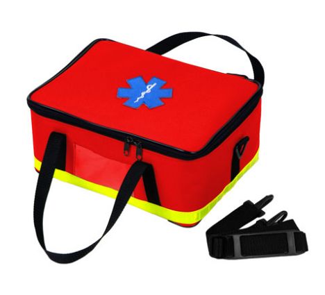 Wykonana zgodnie z zaleceniami koordynatora PSP ds. ratownictwa medycznego. Torba posiada trzy wyodrębnione przegrody na drobny sprzęt i materiały medyczne. Posiada miejsce na podstawowy zestaw opatrunków, maseczkę do sztucznego oddychania, szyny do unieruchomienia złamań oraz drobne akcesoria.