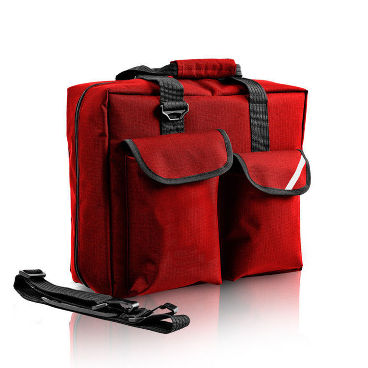 Wnętrze torby wykonano z łatwo zmywalnego NYLONU 210D. Torba zamykana jest na podwójny zamek błyskawiczny, cała opiankowana. W środku dwie otwarte kieszenie, cztery zamykane na zamek błyskawiczny oraz osiem uchwytów z taśmy gumowej. Dodatkowo rzep do mocowania np. ampularium. Na zewnątrz duża kieszeń na dokumenty zamykana na suwak i dwie kieszenie z klapką zapinane na rzep. Dno torby zabezpieczone 4 gumowymi stopkami. Uszy spinane rączką. Pas nośny regulowany, odpinany z naramiennikiem.