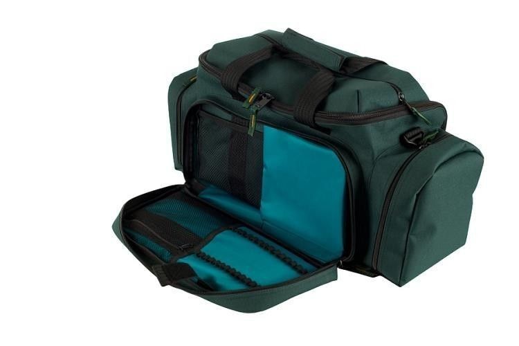 Torba otwierana jest w całości, góra i tył torby co pozwala na łatwy i szybki dostęp do wnętrza torby, Na zewnątrz torby znajduje się 5 kieszeni zamykanych na suwak. W opiankowane przedniej kieszeni znajdują się otwarte kieszenie z siatki, uchwyty z gumek zabezpieczone siatką zamykaną na suwak, ampularium na 30 małych ampułek zabezpieczone pianką.