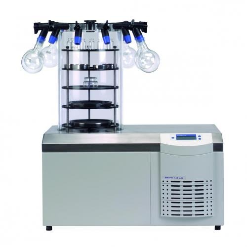 Liofilizatory laboratoryjne do rutynowych aplikacji do większych objętości. Kompletny zestaw stanowi uniwersalny system do suszenia w maks. 12 kolbach, ewentualnie naczyniach na 5 nieogrzewanych półkach. Nowy, przyjazny użytkownikowi kontroler "Lyo Display LDplus".
