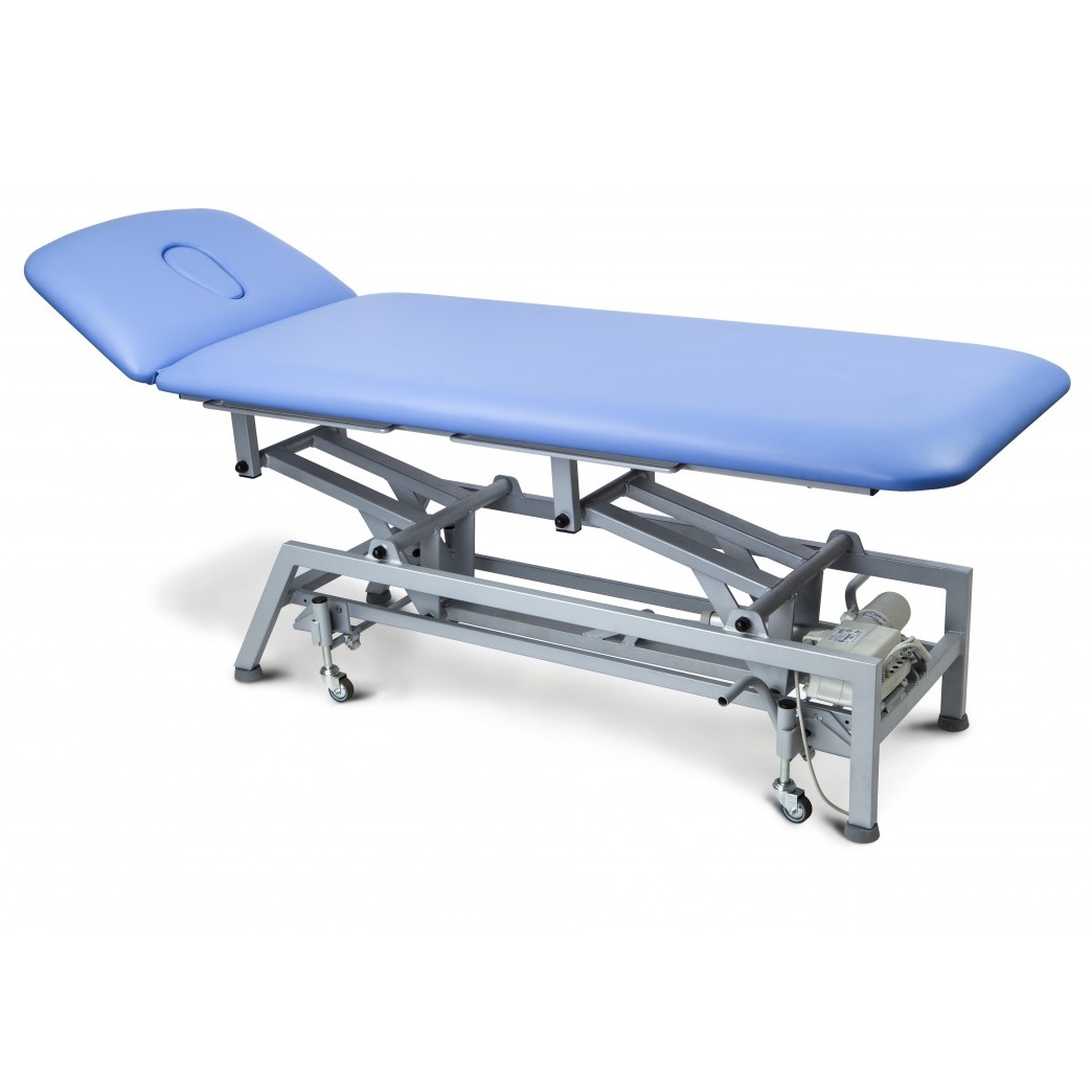 Stół rehabilitacyjny 2-częściowy MASTER 2E posiada stabilne dwusegmentowe leże z regulacją wysokości w zakresie od 48 do 100 cm przy pomocy elektrycznego siłownika sterowanego pilotem ręcznym. Stabilna metalowa konstrukcja stołu, wygodne ergonomiczne leże prostokątne pokryte jest trwałą, odporną na zniszczenia tapicerką, dostępną w szerokiej gamie kolorystycznej. Wygodny zagłówek regulowany jest za pomocą sprężyny gazowej z kątem nachylenia w zakresie od -70° do +40°, dodatkowo z wycięciem na twarz ułatwiającym oddychanie. MASTER to stabilny i trwały stół, o wysokiej jakości, ergonomiczny, dostosowujący się do potrzeb fizjoterapeuty i pacjenta.